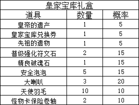 活动内容:限时上架道具“皇家宝库礼盒”
